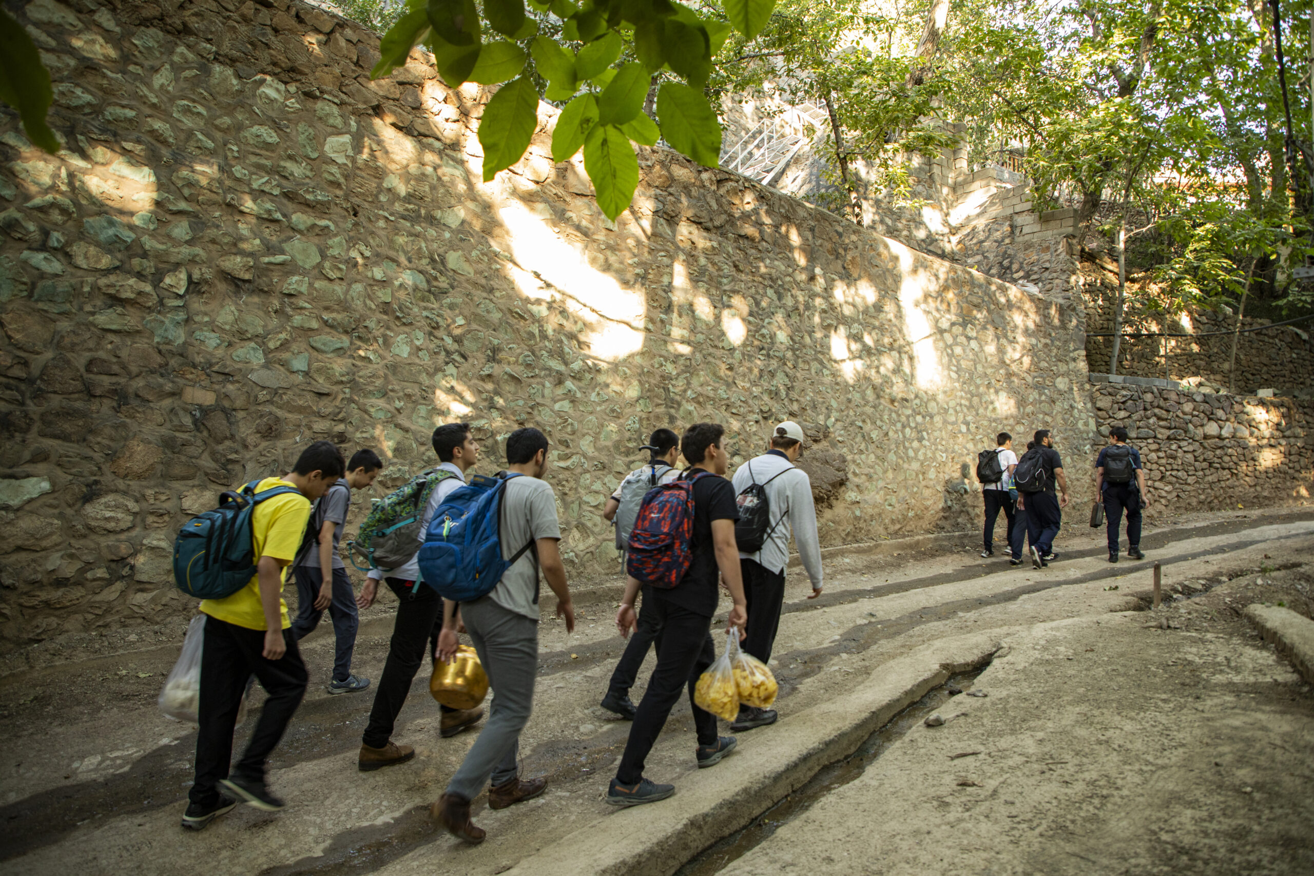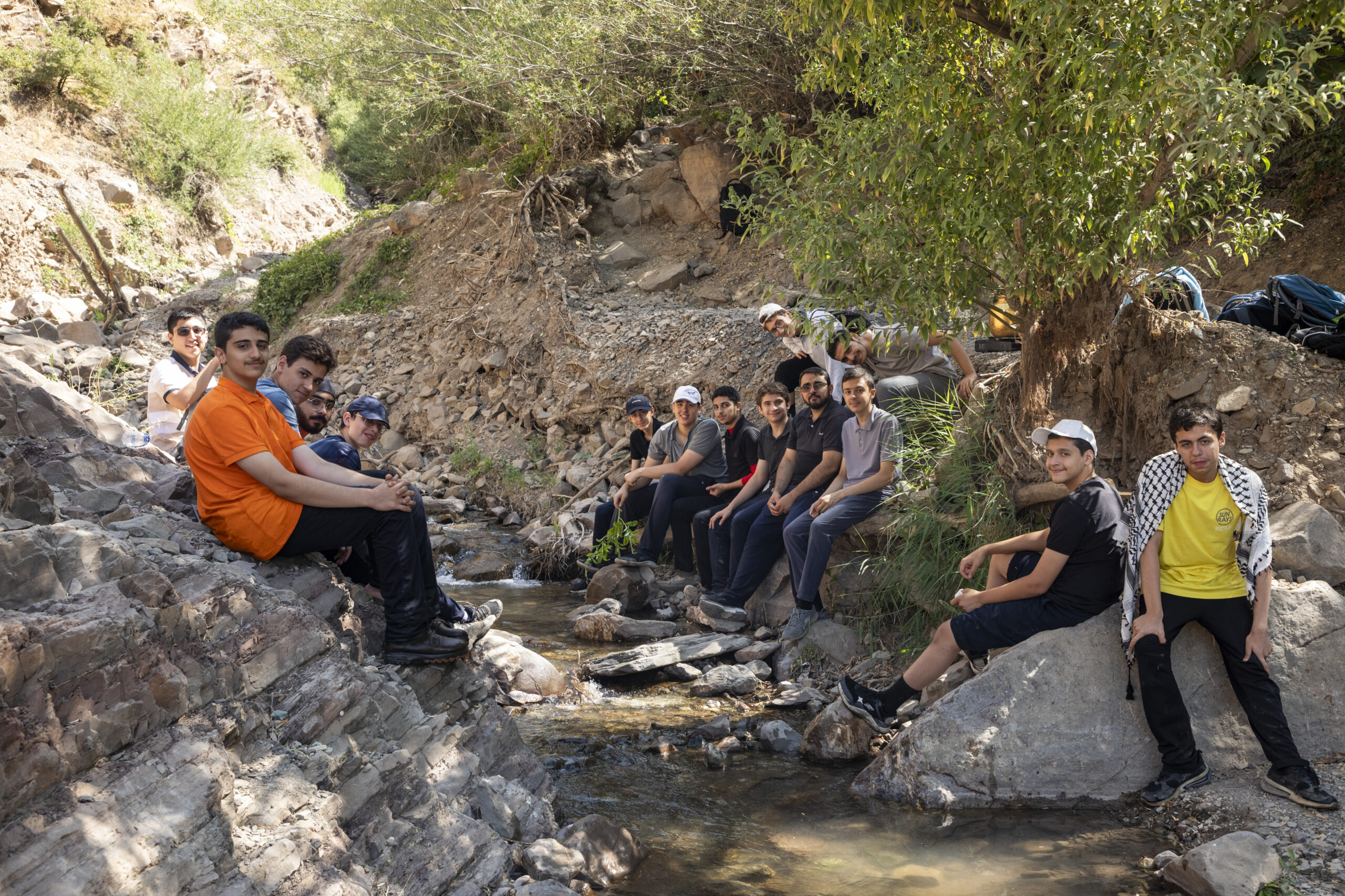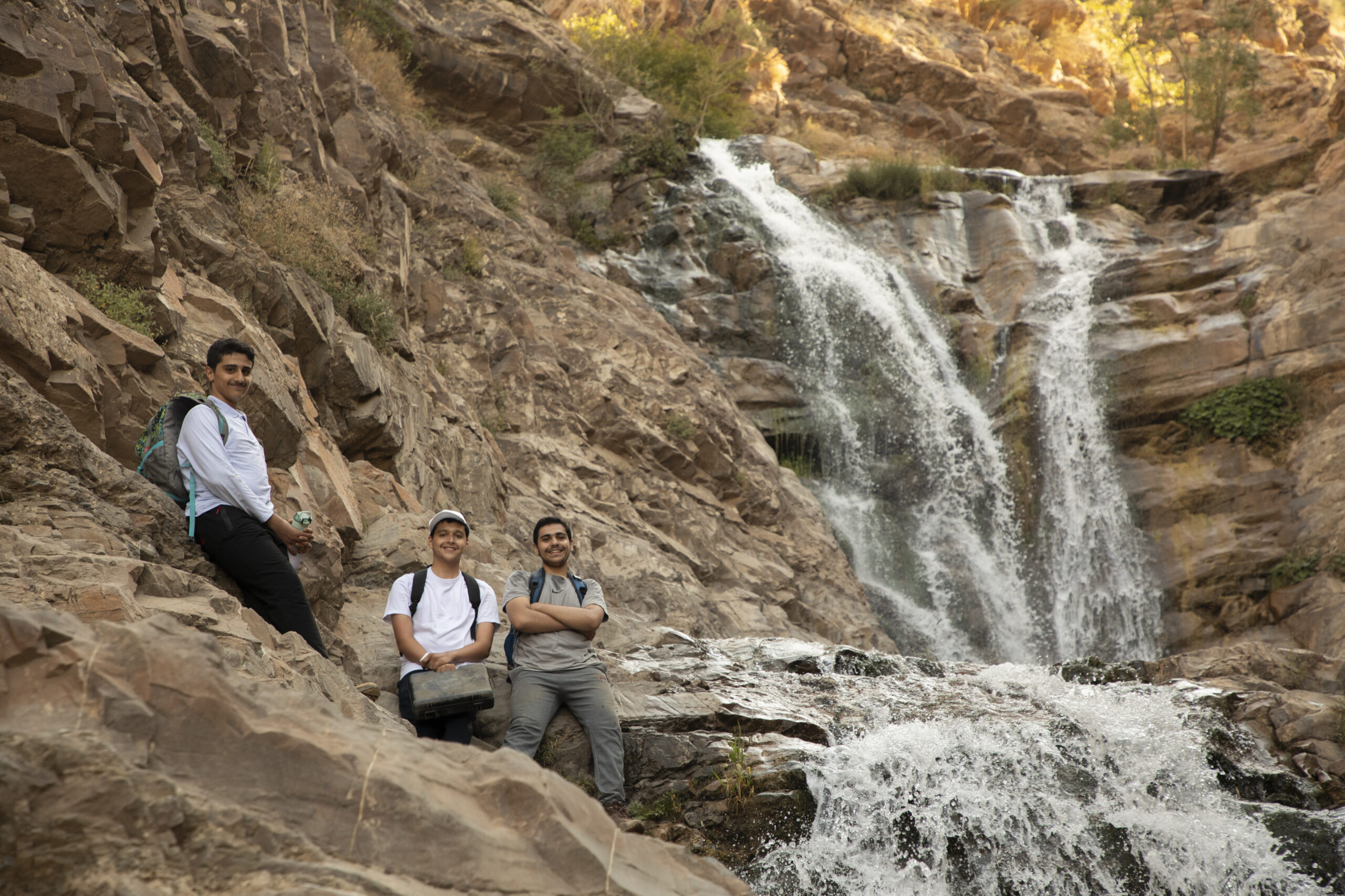 دانش‌آموزان پس از یک پیاده‌روی کوتاه در میان درختان و مسیرهای سرسبز و کوهستانی، به آبشار رسیدند. صدای دل‌نشین آب و مناظر زیبای اطراف، فضایی آرامش‌بخش و دلپذیر ایجاد کرده بود. دانش‌آموزان لحظاتی را به بازی‌های گروهی و استراحت در کنار آبشار پرداختند و برخی نیز در آب خنک پای آبشار، خستگی راه را از تن به در کردند.