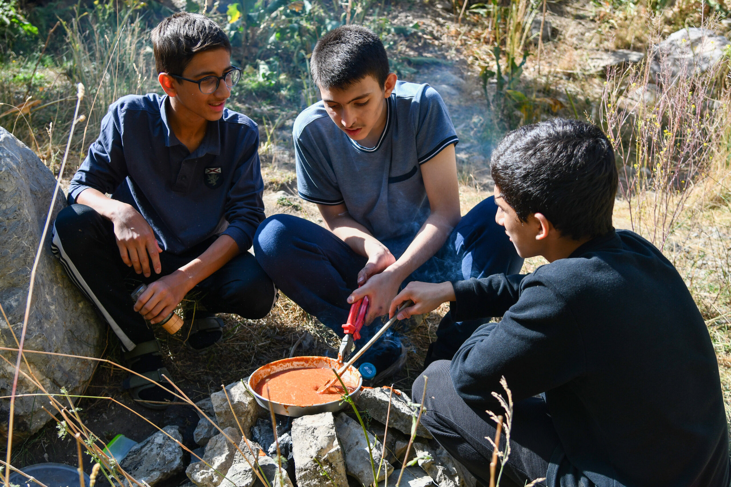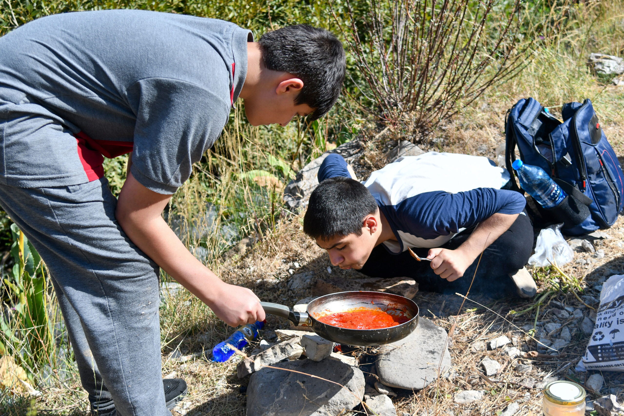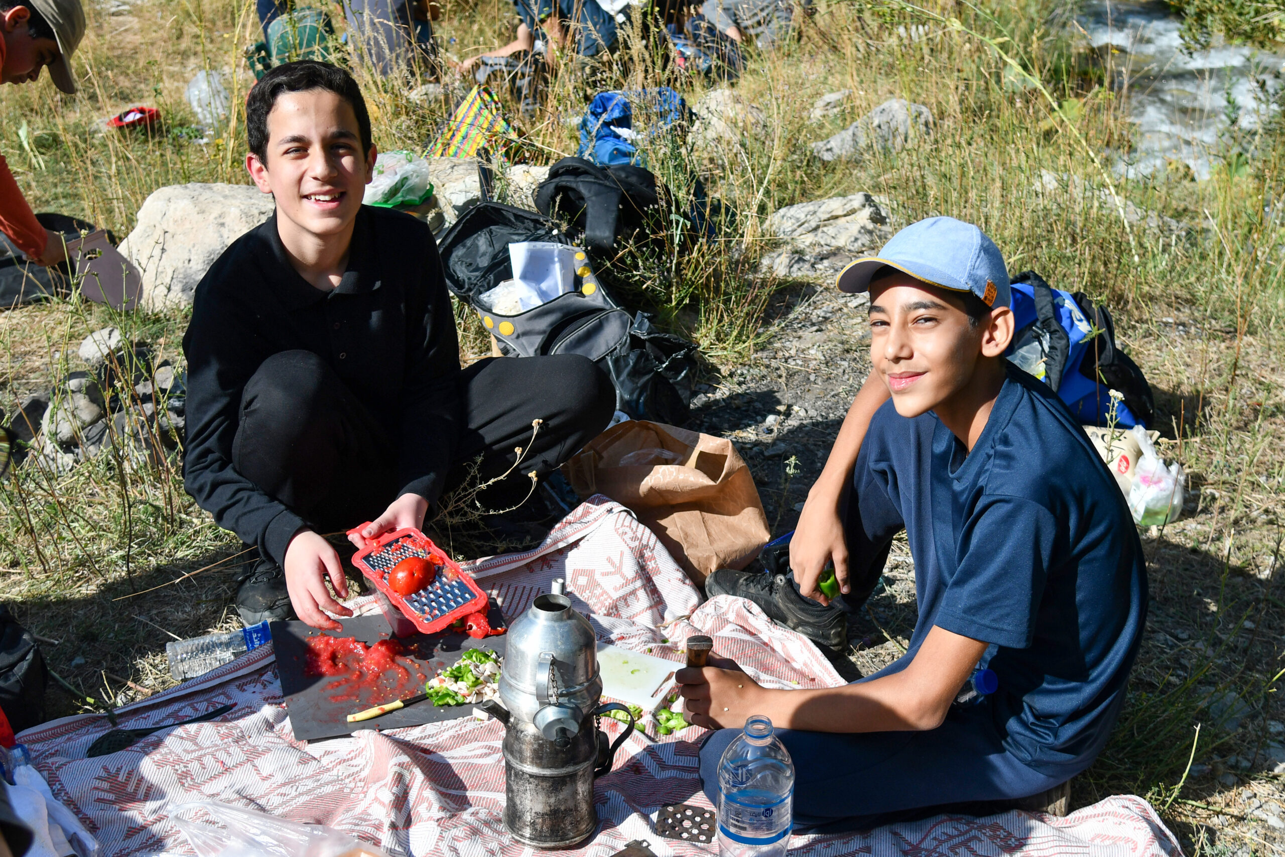 دانشآموزان پایه هشتم متوسطه خانه سراج در یک اردوی یکروزه به دامنهی کوه رفتند. پس از رسیدن به محل اردو، دانشآموزان در کنار رودخانه آرام و خنک آبنیک جمع شدند و به صورت گروهی اقدام به تهیهی صبحانه کردند.