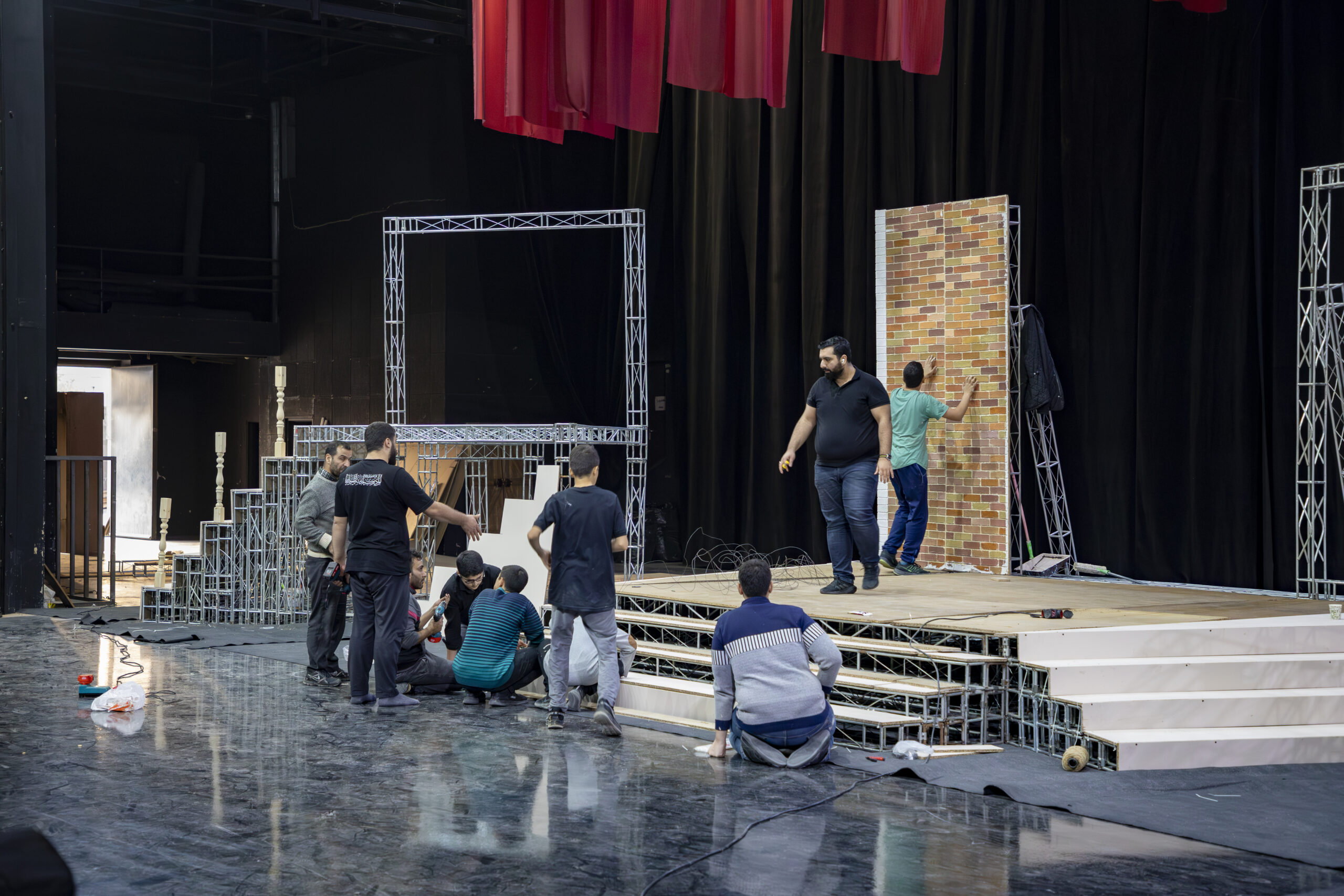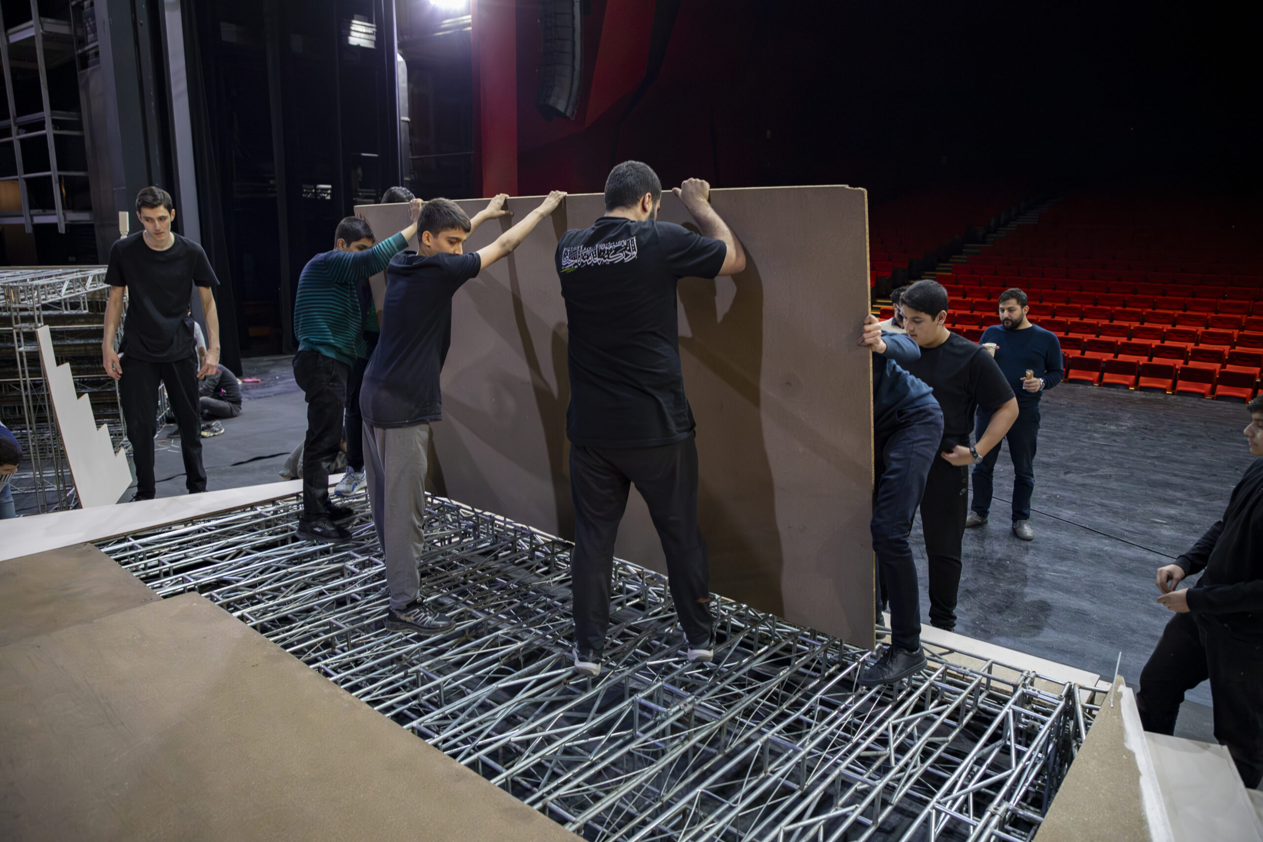 گزارش تصویری از آمادهسازی و اجرای دکور نوانمایش منبر