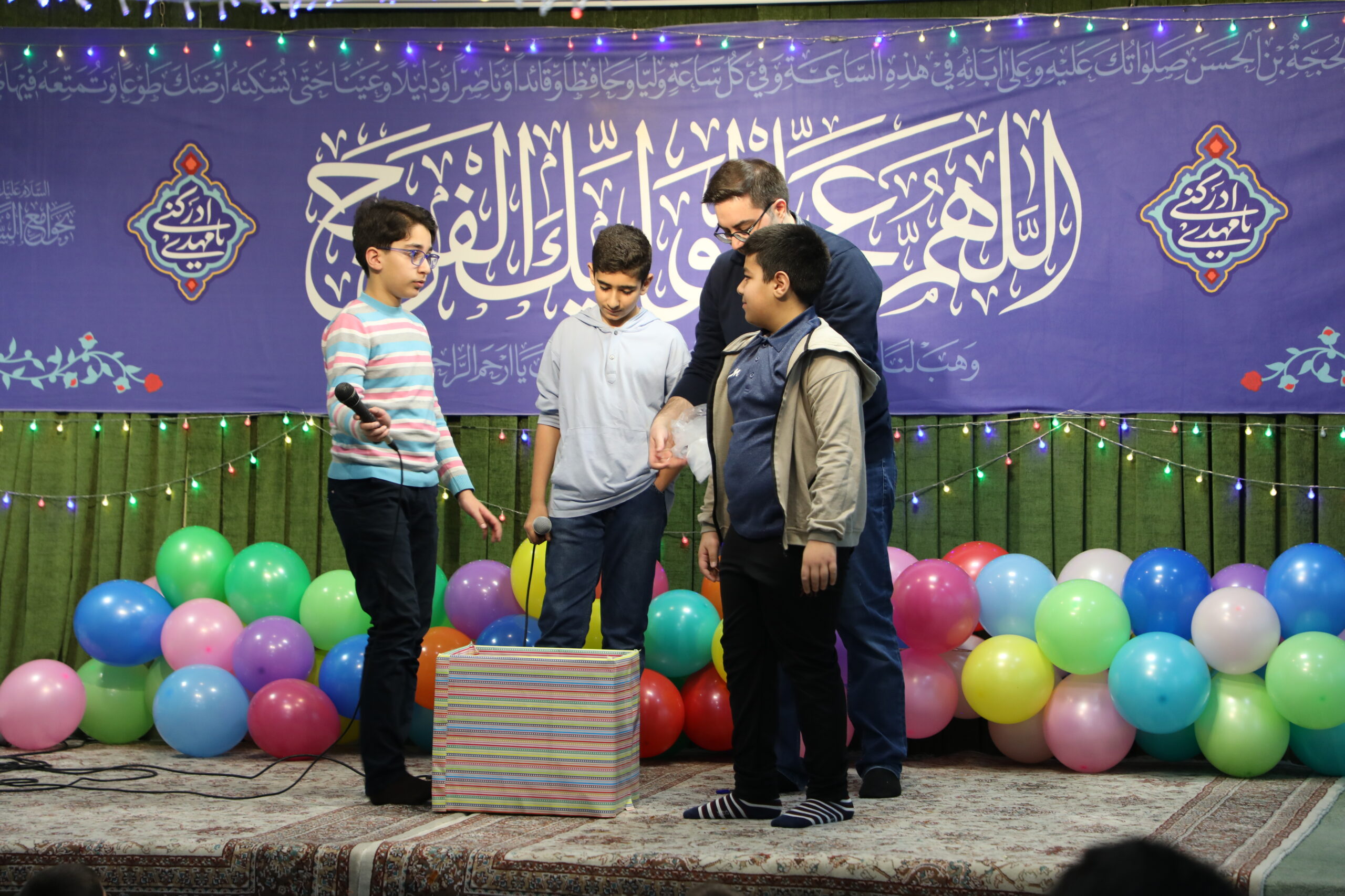 این بخش با تلاوت دلنشین قرآن آغاز شد و با برنامههای متنوعی مثل مجریگری، داستانگویی، دکلمه، استندآپ، نمایش، سرود، مسابقه و مولودیخوانی ادامه یافت. در پایان، صحبتهای آقای نوری بر زیبایی این جشن افزود.